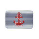 Nautical Navy Blue White Stripes and Red Anchor Bath Mat