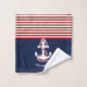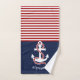 Stylish decorative bath towel features a nautical navy blue and white stripes with a white anchor vector illustration on a blue background you can easily change the colour. Matching items available in our store.