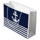 Nautical Navy blue White Stripes and White Anchor Large Gift Bag