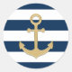 Nautical Navy Blue White Stripes Gold Anchor Classic Round Sticker