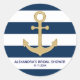 Nautical Navy Blue White Stripes Gold Anchor Classic Round Sticker