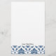 Nautical Navy Blue White Vintage Damask Pattern Stationery