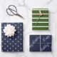 Perfectly simple and nautical wrapping paper sheet set with nautical touches of navy and white anchors, forest green and white stripes, and navy and white sheets saying Happy Birthday
