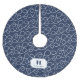 Add a coastal touch to your holiday decor with our navy and white Christmas tree skirt. Design features a pattern of looping nautical rope in white on navy blue, with your single initial monogram and family name.