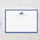 A navy blue and white nautical boat themed flat note card. This is a great addition to any personal or professional correspondence wardrobe. The card can be personalized with the inclusion of a name. The back of the card is in a modern, elegant and stylish striped white and navy.