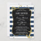 Nautical Navy Stripes Gold Anchor Baby Shower Invitation