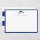 Nautical navy swordfish custom note card. A navy blue and white nautical themed flat note card. This is a great addition to any stationery wardrobe whether professional or personal. Maybe you live near the sea, own a boat or are just a sea lover - this is the perfect card for your correspondence wardrobe. The card can be personalized with the inclusion of a name. The back of the card is in a modern, elegant and stylish striped white and navy.