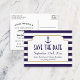 Nautical Navy & White Stripe Anchor Save The Date Announcement Postcard