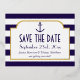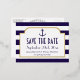 Nautical Navy & White Stripe Anchor Save The Date Foil Invitation Postcard