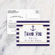 Nautical Navy & White Stripe Anchor Wedding Thank You Postcards