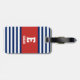 Nautical Navy White Stripes Monogram Luggage Tag