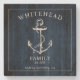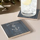 Nautical Navy Wood Anchor Family Monogram Stone Coaster