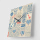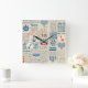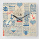 Nautical Newspaper Pattern Square Wall Clock