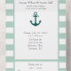 A very beautiful and elegant pastel green and white striped print wedding invitation, with an anchor accent.