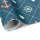 Nautical Pattern Anchor Helm Wheel Sailor Navy Wrapping Paper