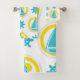 Introducing our "Nautical Pattern Bath Towel Set," adorned with a delightful arrangement of small blue sailboats enclosed in a yellow-bordered circle, complemented by nautical helm blue steering wheels. This unique and stylish curtain is a "wonderful pattern" that serves as a great upgrade to your bath or shower space.