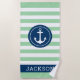 Nautical Personalized Name Navy Green Striped Beach Towel