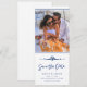 Set sail toward your big day with this nautical photo beach wedding save the date! Featuring a stunning blue nautical design and elegant script font, this card beautifully captures the essence of a seaside celebration. Add your favourite photo of the couple to make it uniquely yours, showcasing your love against the backdrop of the ocean or beach.