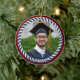 Nautical Photo Navy Blue White stripes Graduation Ceramic Ornament