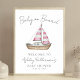 Set the tone for your nautical-themed baby shower with this simple and elegant welcome sign. A classic sailboat with pink stripes is centred in the design, with a red life ring adding a timeless maritime touch.