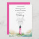 Nautical Pink Lighthouse Beach Destination Wedding Invitation