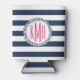 Make sure your yacht club style is on point with these preppy-chic can coolers! Design features nautical navy blue and white stripes and a circular rope badge with your three-initial monogram in contrasting hot magenta pink.