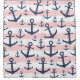Summer design featuring navy blue anchor pattern on a blush pink and white stripe background.