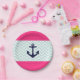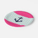 Nautical Pink White Mint Chevron Anchor Pattern Paper Plate
