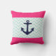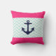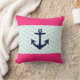 Nautical Pink White Mint Chevron Anchor Pattern Throw Pillow