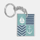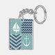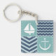 A quilt inspired pattern of stormy turquoise squares, decorated with a white sailboat and anchor, and deep navy blue squares, accented with paler blue chevrons and waves, is accented by white stitching to create a classic nautical feel.