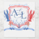 Nautical Red Blue Lobster Crest Monogram Wine Label