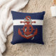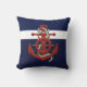 Nautical red ship's wheel/anchor navy blue throw p pillow