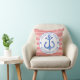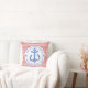 NewparkLane - Nautical Throw Pillow, with a red and white striped pattern and a navy blue anchor in a circular white frame. Add your family name or other personal text in the frame around the anchor.