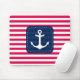 Nautical Red White Stripes Navy Blue Banner Anchor Mouse Pad