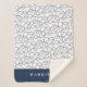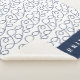 Beach house chic sherpa blanket features a pattern of looping nautical rope in navy blue on white. Add your family name or custom caption along the bottom.