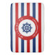 Gorgeous timeless nautical sailor style design with blue rudder on the centre with white circle on background with personalized texts on the top and lower side. The design has red white and navy blue strips pattern on the background. Suitable personalized gift for your loved ones. Customizable in Zazzle with your own text for a personalized design. Check out my store for matching items!