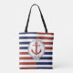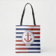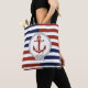 Nautical rust red ship anchor, navy, red stripe tote bag