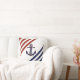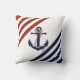 Nautical rusty blue anchor/rope/red/white stripe throw pillow