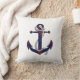 Nautical rusty blue anchor/rope/red/white throw pillow