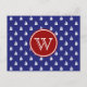 Nautical Sail Away on Blue With Red Monogram Postcard