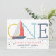 Nautical Sailboat 1st birthday invitation. Back of invite has a sailboat pattern.