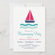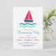 Nautical summer beach house housewarming party celebration invitation. Invite features blue, pink, navy, turquoise sailboat and waves.