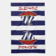 This cute and trendy kitchen towel has a sailboats on a background of navy and white horizontal stripes. It will be a great addition to your home, boat or beach house decor. Customize with a name or monogram initial.