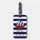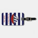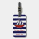 This nautical sailboat luggage tag will look cute and fashionable whether flying to the beach or cruising the seas. This design features navy and white stripes with a red, white and navy sailboat. Customize with your name and address.