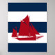 Nautical Sailboat print red, navy and white