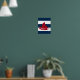 This is a terrific nautical print to go with your decor. It features a sailboat on a navy blue and white striped background.