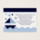 Use these cute little favour tags (designed using a business card template) in the Nautical Sailboats Navy theme to include with your invitations. Many people prefer to have a story book instead of a card for Baby Showers. This is a cute way to tell your guests. Make sure to change the Parents name on the card.