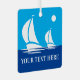 Nautical sailing boat custom square metal Christmas ornament for sailors. Upload your own picture on the back to create your a unique x-mas tree ornament. Create one for skipper, boat captain, dad, husband, friend, boyfriend, coach, first mate, boss, coworker, employee, brother, uncle, grandpa etc. Create your own Holiday decorations. Blue or custom colours with personalized text. Double sided with string. Sunset sail ship silhouette.