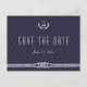 Nautical wedding Save the Date postcards with white anchor and customizable text - you can change text, printed on navy blue background with anchor pattern