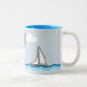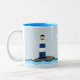 Nautical Scene with Lighthouse and Sailboat Two-Tone Coffee Mug